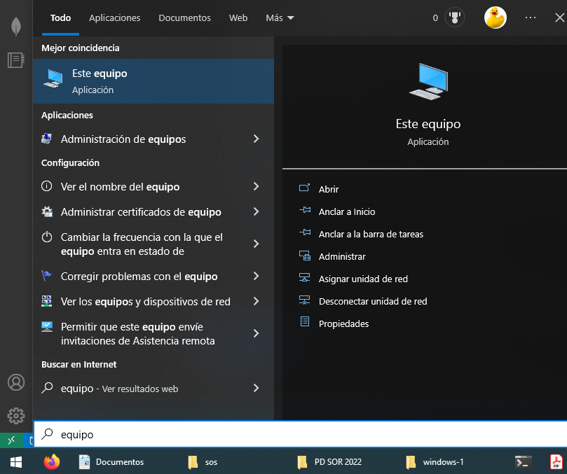1. Pulsa en el icono de Windows -> Este equipo.