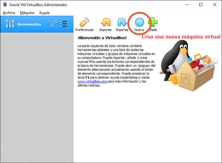 | 1. Pulsamos en el botón "Nueva" (o máquina → Nueva) |
