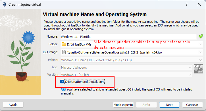 - Mi consejo si dispones de 8GB de RAM o menos es que lo hagas con una ISO de W10 en lugar de Windows 11 y le pongas solo 2 GB.